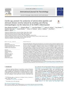 Giardia spp. promote the production of antimicrobial peptides and attenuate disease severity induced by attaching and