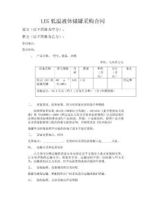 LEG低温液体储罐采购合同。需方(以下简称为甲方):。供方(以下简称为乙方):。签订地点:。签订时间:。一、 产品名称、 型号、数量、金额。单位:人民币万元。二、 质量要求、技术标准、供方对质量负责的条件和期限。按照国家价标准GB150《钢制压力容器》、GB《真空绝热压力容器》和TSGR0004—2009《固定是压力其安全技术监察规程》以及国家现行法律法规及标准的要求进行产品制造、检验;产品验收时,提供产品合格证及质量监督部门提供的相关监检证明;详细要求见《技术协议》 储罐外部形象按照甲方提供的电子或文字进行装饰。。三、 设备交货地点、时间。交货地点:______________,交货时间为预付款到帐日起_______天内。。四、 运输方式和运费负担。乙方采用公路运输将设备安全无损运至甲方制定工地安装现场交货,乙方对货物的运输安全、质量负全责,运输过程中的一切问题与甲方无关;运输费用由乙方承担,但不包括货到现场吊装卸车费用。。五、 包装标准、包装物的供应及回收。储罐为裸装运输,所配附件出厂时采取适合运输的保护措施。。六、 验收标准、方法及提出异议期限。